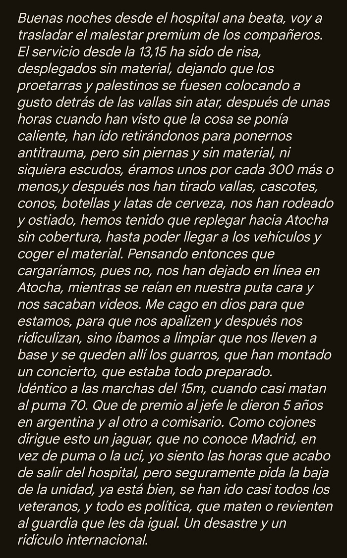 La policía desesperada criticó la connivencia de los mandos policiales con la postura del Presidente del Gobierno: