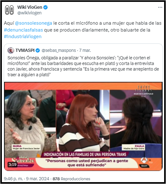 Programa de tertulias dirigido por Sonsoles Onega que defiende la ley viogen cuando se aplica contra hombres heterosexuales pero la ataca cuando se usa para arruinar la vida de mujeres