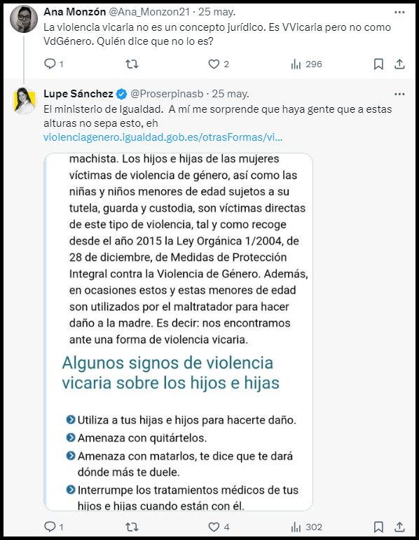25/05/2024. Se enzarza en Twitter con @ProserpinaB sobre el término violencia vicaria