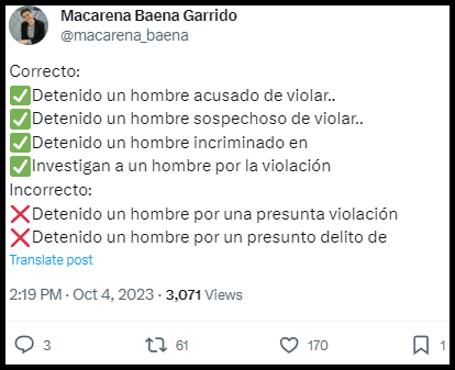 Macarena Baena publica un hilo en Twitter con las mentiras habituales del amarillismo feminista radical de la prensa afín al PSOE.