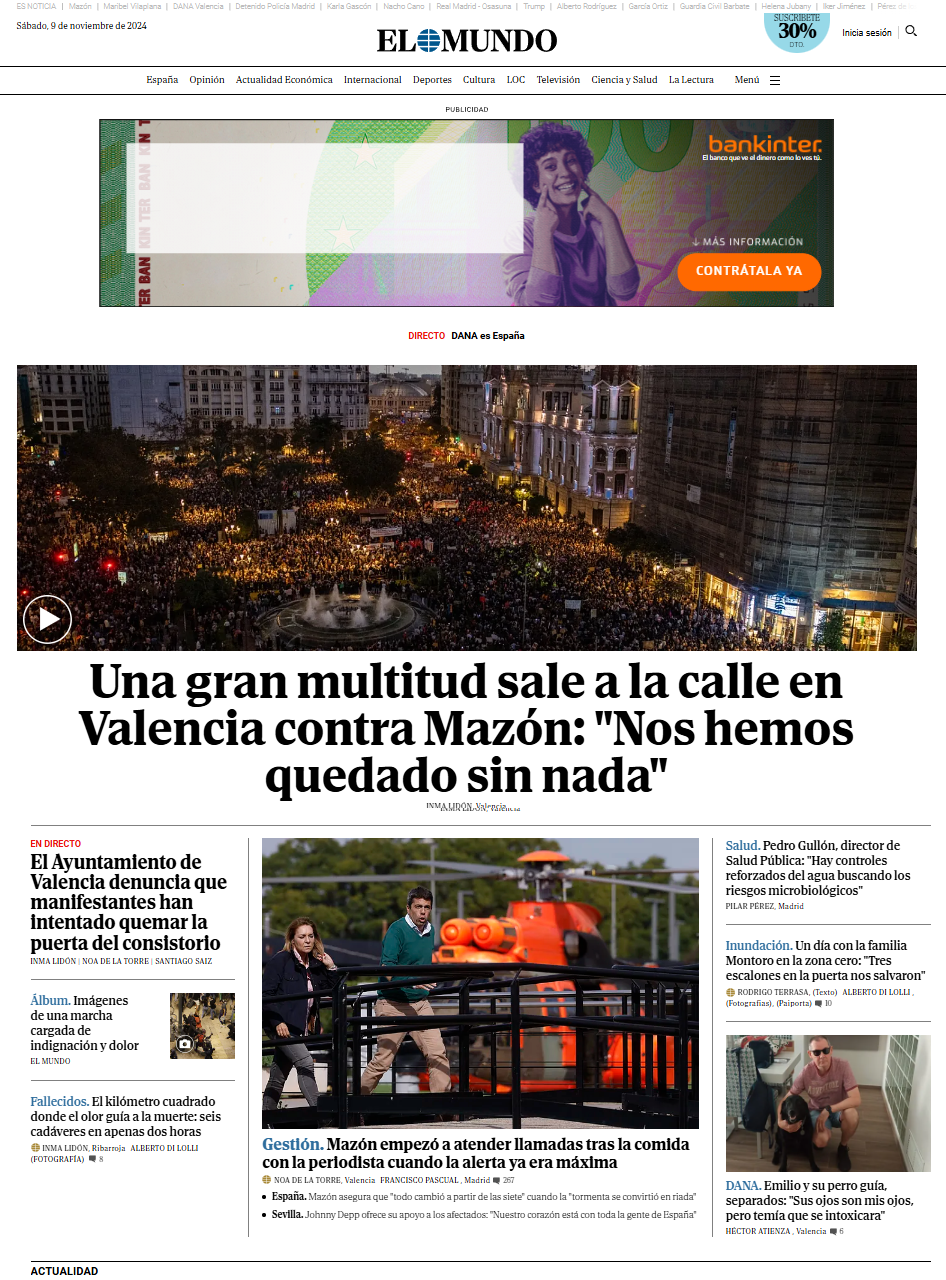 ElMundo vende en su portada de noche-madrugada la idea de que la manifestación de Valencia es de los valencianos , cuando realmente es de la extrema izquierda y la izquierda clientelar, mientras tanto blinda de antidisturbios la sede de Ferraz consciente de que habría replica por parte de la extrema derecha.