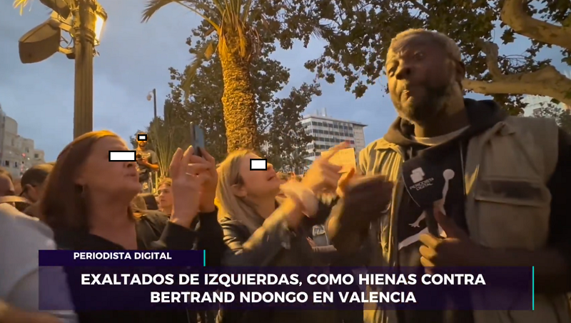 Bertrand Ndongo, periodista de derechas, va a la manifestación, le echan a patadas, cuando es sabido que en anteriores manifestaciones de vecinos el más vilipendiado ha sido Pedro Sánchez, este tipo de informaciones no se reflejan en la portada de ElMundo [2]