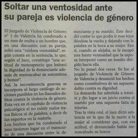 Ha tenido que ser precisamente una mujer la que denunciara lo obvio. Como en el cuento, nadie se atrevía a decir que el rey iba desnudo pero estaba en pelotas. Así ocurre con la Ley contra la Violencia de Género, ley que desarrolla una fuerte violencia legal contra un género, el masculino, que queda reducido a la condición de paria sin derechos, vulnerándose no solamente la Constitución española, sino los convenios suscritos por España en relación con la defensa de los derechos humanos, uno de los cuales prescribe que nadie puede ser discriminado por razón de sexo, religión, raza, origen étnico u opiniones políticas. Así, sin subterfugios, sin atajos, sin interpretaciones de rectores agradecidos. ¿Cómo se ha llegado hasta aquí? ¿Por qué el Parlamento español ha abjurado del deber de defender la Constitución y los derechos de todos los españoles? Sin duda, la respuesta está en dos causas: una, el ansia electoral de los partidos españoles, que manejaron en su día encuestas en las que aparecía de manera palmaria el apoyo de las mujeres de este país a cualquier medida que protegiera a las mismas, vulnerara o no los derechos de los hombres. Los partidos sabían muy bien que la mayor base de votantes en este país es femenina. Que la mayoría de los consumidores de televisión pública es femenina y que éste sector de población, nunca entendería de disquisiciones jurídicas sobre los derechos y sobre los valores, sólo atendería a valorar al partido que sacara adelante la ley y a castigar a los que se opusieran. Por eso, el Partido Popular y el Partido Socialista, que no coinciden ni en la política terrorista, coincidieron esta vez. Los costes de no aprobar la Ley -que nunca va a solucionar el problema- eran, en términos electorales, mayores que si se aprobaba -son muy pocos los hombres que se cuestionan el bombardeo diario de la publicidad diciéndoles lo malos y machistas que son-. La segunda la tenemos en el poderoso lobby feminista que domina el Gobierno de la nación. Tan importante es que han hecho creer a la población que el problema de la violencia familiar en España es poco menos que el mayor del mundo, cuando ni siquiera estamos entre los diez primeros países en los que el problema es más grave. El lobby feminista ha presionado para conseguir leyes en la línea de sus tesis: partiendo de los postulados -nunca verificados científicamente- de que estamos en una sociedad machista y patriarcal en la que hay que luchar contra el «macho» dominante, como sea. Y para ello, no han dudado en promover una ley inmoral, que atenta contra los derechos humanos de los hombres al verse penados con mayor gravedad que una mujer por una misma conducta. Las páginas feministas lo saludaron como una victoria histórica, pero la verdad es que en ningún país del mundo civilizado existe una ley que discrimine a un sexo en detrimento de otro. Aunque... si hablamos de Arabía Saudí, de Yemen... en efecto, ahí sí se discrimina por razón de sexo. Y en éstas llega una magistrada y se cuestiona la constitucionalidad de la Ley. ¿Qué hará el Tribunal Constitucional?. Si acaso dijeran que no es constitucional ¿cuánto tardarían las feministas en plantarse delante del mismo denunciándolos por «patriarcales y machistas»? Realmente lo tienen difícil y personalmente, dudo que el inconsciente que subyace en toda persona de generalizar considerando -erróneamente-a la mujer como la parte «más débil», no les traicione. Dentro de la Ley y apoyándose en la sagrada libertad de expresión, con valentía, hay que denunciar esta Ley por sexista. Hay que insistir en que no contará con la solidaridad de los que creemos en la igualdad sin atajos. Hay que luchar contra la censura impuesta contra toda opinión que se oponga al feminismo hembrista que impregna este Gobierno y su -por lo visto- leal oposición. Tenemos el deber moral de denunciar el horror de este hembrismo feminista que radicaliza las leyes y las hace tan sólo para una parte de la población. Mi sincera enhorabuena para esa magistrada. Mi respeto por su valentía y la defensa de la libertad. [18]