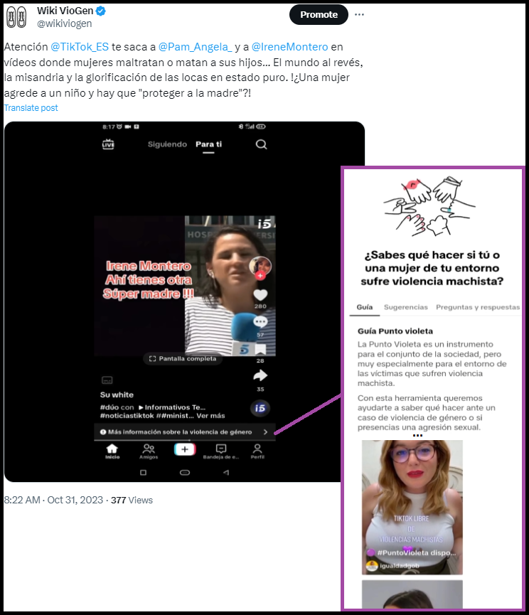 Incluso algunas redes sociales como tiktok etiquetaban como si fueran contenidos relativos a violencia de genero cuando los videos literalmente dicen que la mujer maltrata al hijo.