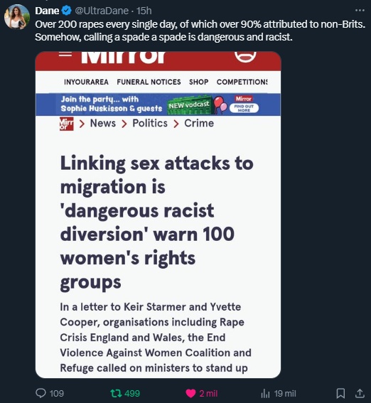 22/08/2025. Feministas británicas dicen que el problema de las violaciones no son los extranjeros, los datos dicen lo contrario
