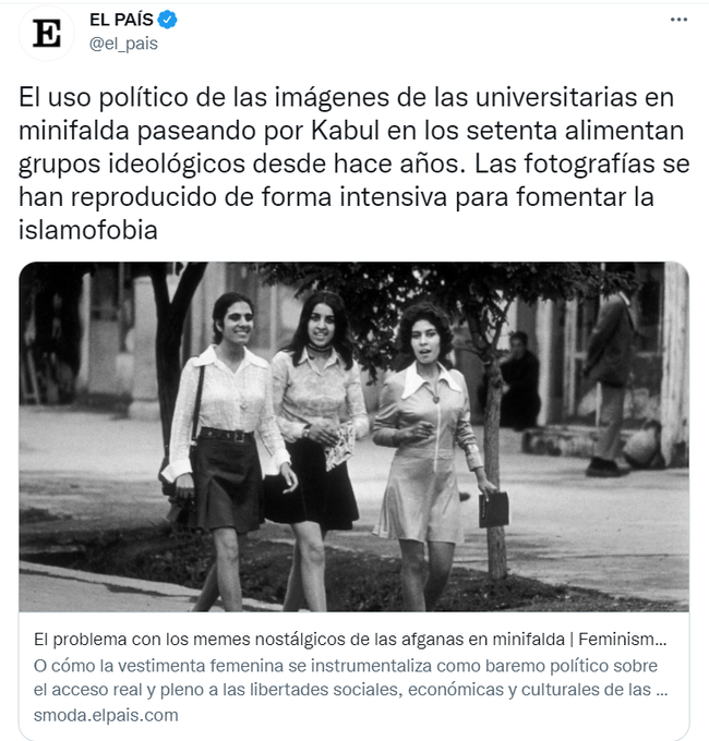 26/08/2021. ElPais crítica el uso político de la foto de chicas con falda en Afganistán (pq lo usa principalmente la derecha)