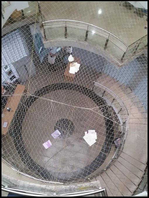 ¿Es verdad que había una red anti-suicidios en el juzgado de violencia de genero de Madrid?. Ahora no, porque el nuevo edificio no tiene hueco entre las escaleras, antiguamente había una red de seguridad abajo, cuando tu decías algo te decían 'es normativa, es por seguridad', pues yo en el resto de edificios no lo veo, solo lo he visto en el antiguo juzgado de violencia de genero de Madrid [2]