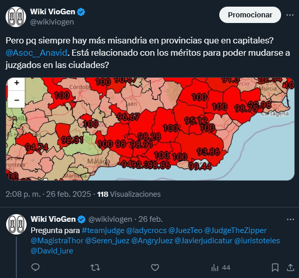 Los juzgados viogen podrían hacer públicas las denuncias (una vez anonimizadas por RGPD) para que organismos independientes pudieran analizar las inconsistencias de las mismas, sin embargo los juzgados viogen no lo hacen, solo se publican estadísticas genéricas como "número de veces que la mujer no declaró" y luego actores políticos señalan que esos casos son de "mujeres que tienen un vinculo emocional con el acusado" sin llegarse a conocer públicamente si la denuncia se sostenía o era un cúmulo de incongruencias y la mujer se abstuvo de declarar para no incurrir en perjurio.