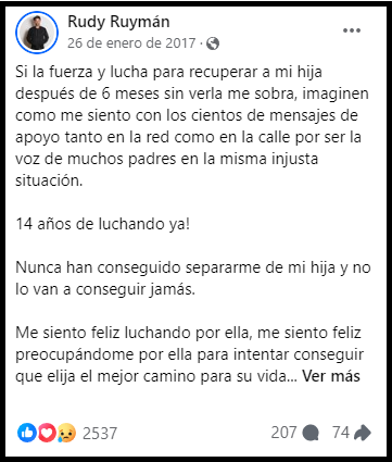 26/01/2017. Importante alcance de Rudy en Facebook sobre el tema para la época