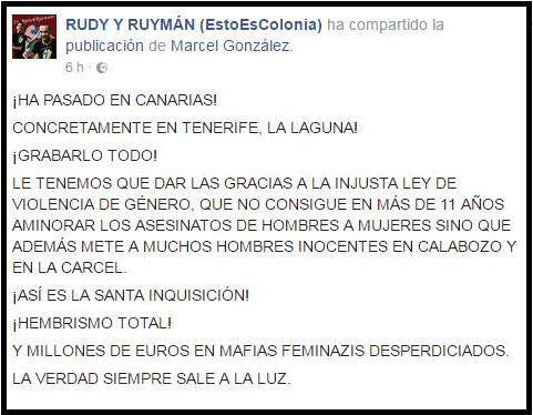 Un conocido humorista canario y portavoz contra la ley de violencia de genero, se ha visto mezclado en varias polémicas por su negativa a callarse ante los abusos de la ley de violencia de genero, de los primeros en tener eco en redes con sus comentarios. Originalmente eran dos personas (Rudy y Ruimán) pero en algún momento Rudy continuó en solitario, de ahí que las noticias antiguas mencionen a dos personas.