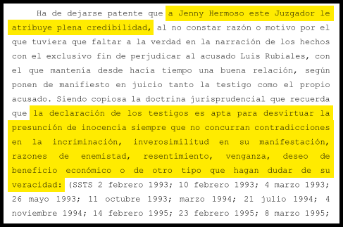 La sentencia del caso Rubiales se pasa por el forro las obvias pruebas de enemistad previa, la instrumentalización que se hizo del caso, las contradicciones de Jennifer Hermoso las horas siguientes a los hechos y los beneficios que tuvo Hermoso por los hechos acontecidos, como por ejemplo su participación en las Campanadas de RTVE. Alucinante.