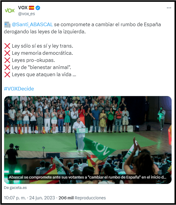 24/06/2023. Para que no quede duda VOX omite la principal ley misándrica de España