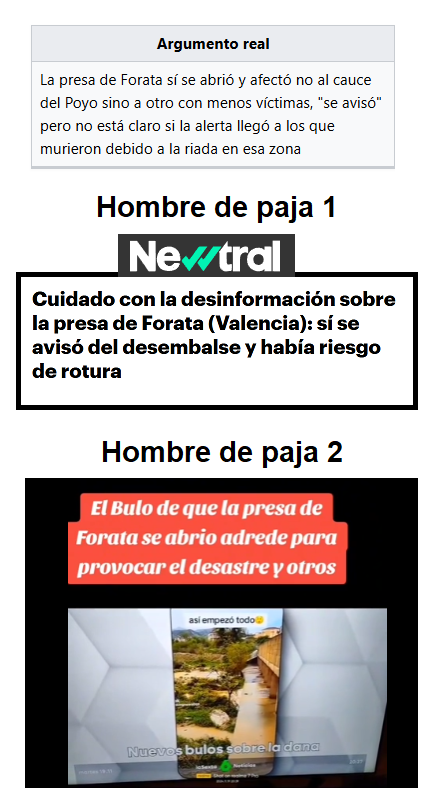 | Argumento real | Argumento del "hombre de paja" | Como se construye el hombre de paja | Fuente |