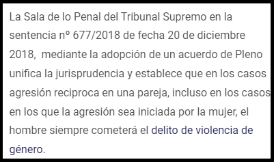 20/12/2018. En casos de agresión mutua iniciada por la mujer el hombre comete delito de viogen