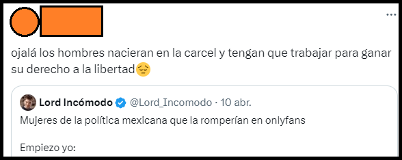 [[Archivo:Tweet_misandrico.png|border|center|frame|Este es de Abril 2024]] | [[Archivo:Tweet_misandrico.png|border|center|frame|Este es de Abril 2024]] | ||